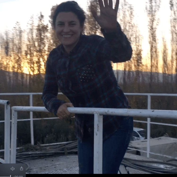 En la foto estoy subida a una Colossus cosechando arbequina, un atardecer precioso en el oeste argentino, contra Los Andes.